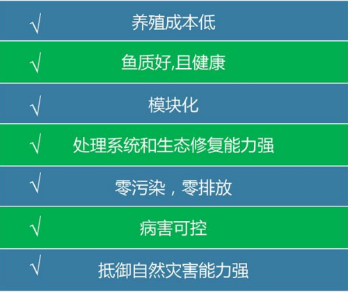 (1)成本低,新型养殖设备,模块化,高密度养鱼,不影响当地水产生态环境.