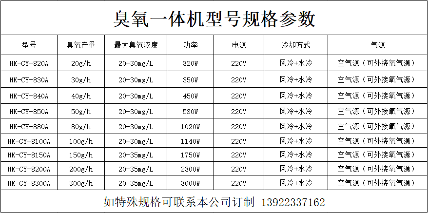 臭氧产量:10-100g/h
