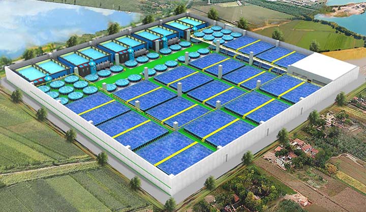广州环控农业生物科技有限公司外塘高密度循环水养殖系统。利用外塘养水,高密区养鱼的新模式,提升了养殖密度,改善了水质,增强了养殖品种的体质,降低了患病风险。