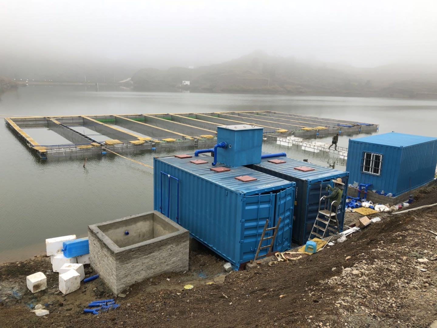 广州环控于是立刻派出施工团队进行实地考察,航拍选址,水深测量等等,最后设计出来的悬浮式养殖水槽方案令客户非常满意。以下附上整个项目的图片: